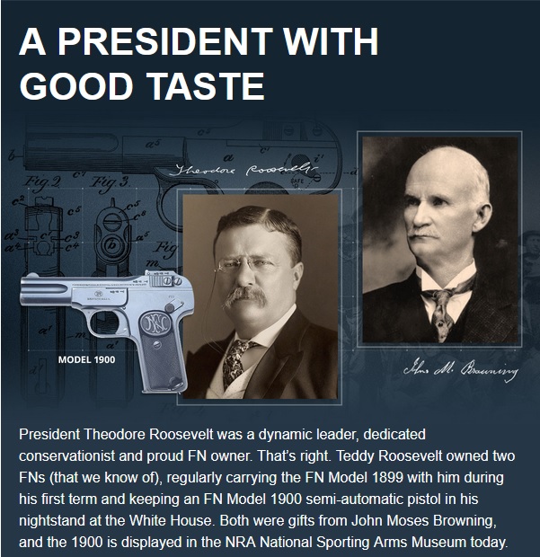 Not only did Teddy Roosevelt carry a handgun but it was one given to him by John Moses Browning himself! How cool is that!