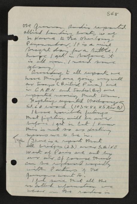 6-6-44 [*Type*] (The war is on. At 0700 BBC announced that the