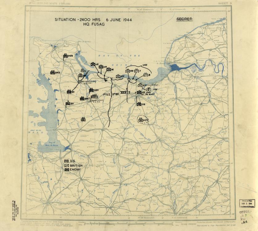 Searching for new materials to post about D-Day I came across some things from the Library of Congress. First was a map of the positions of all units, Allied and German, on June 6th at 2400 hours.