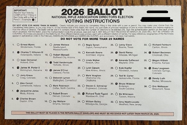 Ballots arrived for both the Complementary Spouse and myself while I was in Las Vegas at the SHOT Show. Now it is time to fill them out and get them in the mail. All ballots must be received – not merely postmarked – by March 29, 2026. You have two months to get them in but I wouldn’t wait.