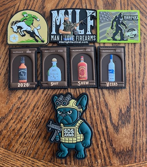 Over the years I have come home with a lot of swag from the SHOT Show. Every year seems a little different other than patches are always popular. Stickers are moving up in popularity due to the cost savings over patches.