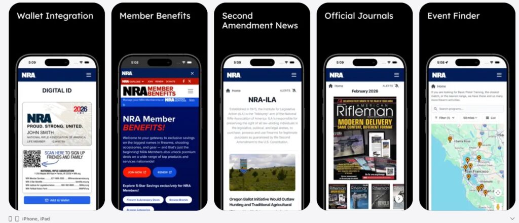 The NRA App is available for download from the App Store and Google Play. Go and download the APP right now! It can display your digital NRA ID Card in your apple wallet, access the latest news from ILA, you can read your digital magazine/Official Journal, find local NRA events based on your geolocation or zip code, and access Member Benefits.